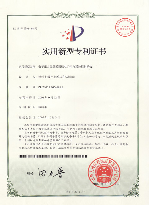2006 年:數顯閉環式電子張力器研發成功,同年被評為東莞市民營科技企業,