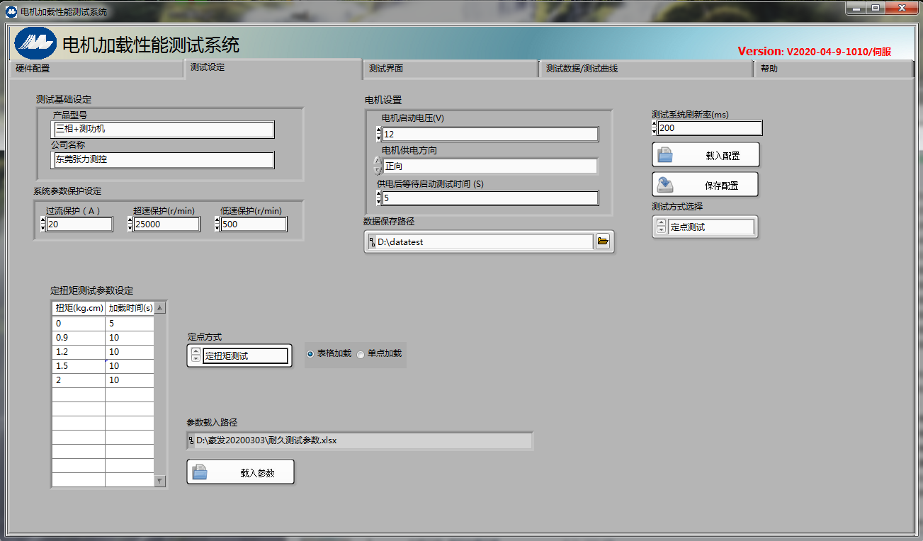 •自動測試方式:即負載根據設置自動加載,掃描出電機從空載到堵轉(或設定值)的特征曲線。因為電機在零載到相應負載和相應負載到空載這個過程中,下降曲線和回升曲線是存在相應誤差,系統可以通過下降曲線和回升曲線計算擬合出電機最真實的曲線,所以此界面就是最好的測試方式。