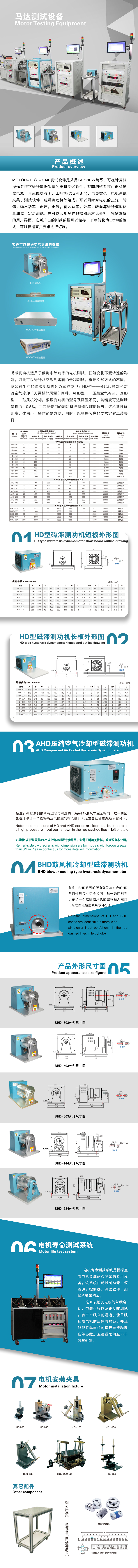 磁滯式測功機(AHD系列)對于低中等功率的測試是通用和理想的。磁滯式剎車不需 依靠速度來產生扭力,因此可以進行從無載到堵轉的全程測試。剎車冷卻根據型號是由對流冷卻 (無風源)或空氣冷卻(壓縮空氣AHD系列或鼓風機BHD系列)提供,磁滯式測功機有連續性 的和短時間散發更多熱量能力的間歇性功率范圍。根據測功機的大小和系統組成,其精確度為滿 刻度的±0.25%到±0.5%。同時也提供對于高速電機測試的特殊設計。使用于各種交直流電機的 性能測試 (扭矩,轉速, 功率等), 被廣泛應用于汽車馬達,家用電器馬達, 電動工具馬達,壓 縮機電機及航空電機的檢測。